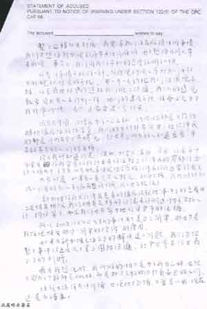 【新生4日訊】圖是一位在12月31日被新加坡七、八位鎮暴警察強行按倒在地並擡上警車的法輪功學員,在錄口供中寫給法官的總結。並說這篇文章(圖)僅代表他的個人意見。不代表法輪功及其他任何人。