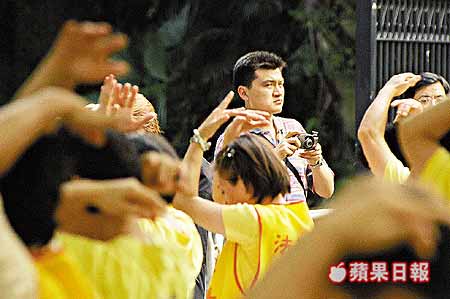 蘋果日報發現有四名男子在學員練功時,神秘地以相機拍下學員練功情況。當記者上前查詢時,其中一名操普通話的男子邊走邊說自己來自北京,公司派他來港辦事,但他否認是公安或國安部門人員。