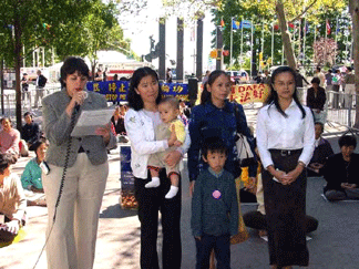 來自紐約皇後區的賽麗.王(CELIA WANG)講述了她的丈夫由於堅持修煉並告訴別人法輪大法的真相而被非法關押至今的情況。他們一家被拆散,王不得不將兩歲的女兒留在大陸,自己帶著五歲的兒子漂泊海外。