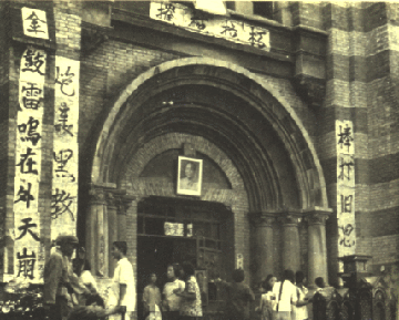 宗教一旦成為“國家學說”是可怕的,這已經為人們所領教。非宗教的東西一旦成了不容置疑的“國家學說”,情況又會怎樣呢?這張照片已經做了很好的回答。紅衛兵對教堂的搗毀與占領,實際上是一種信仰憑借其“國家學說”的地位,對其它信仰的否定與排斥。占領教堂這樣的陣地只是一種舉措,其最終目的是要占領人們的頭腦,統一人們的思想。麻煩的是,思想是無形的,占領不了,只好去“占領”人們的嘴巴,當連嘴巴也占領不了時,就消滅他的肉體,就像文革時對待張志新,現在對待法輪功一樣。