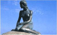 即將離開丹麥乘船去德國時,一個大眼睛黑頭發很漂亮的女孩子吸引了我的視線。一看她就是外鄉人,大概是意大利或其他什麼南歐國家的人吧?丹麥人都是金頭發的。她站在路旁賣冰淇淩。天氣不熱,生意很不好。我不知為什麼忽然想到了美人魚和賣火柴的小女孩,連忙跑過去買一個最大的冰淇淩,並稱贊她漂亮。她很高興,一邊告訴我王子要娶中國新娘,一邊堅持要送給我一瓶飲料。我要急著趕火車,匆匆與她道別。後來的幾天裏天氣越來越熱,這位不知名又善良的小姑娘生意會好些吧?