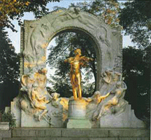 他不僅成立了自己的樂團,而且以他的特殊方式,――演奏小提琴,隨心所欲地指揮自己的作品。維也納中心公園裏斯特勞斯拉琴的塑像遠比維也納森林令我留連忘返。在那兒,一個熱情的本地中年婦女主動要給逢時與我留個影。我們謝她,她卻反謝我們,大概是謝我們同樣熱愛他們心中的樂神。