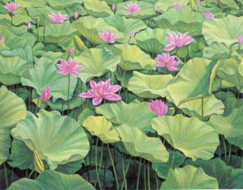 您是否看過風中的荷瑭?我看過。每朵荷花,似乎對應著一顆風粒子,微風徐來,荷瑭的花兒,一齊跳著慢舞;狂風襲來,荷瑭便似遭難的信徒,一齊屹立在風強雨急中。