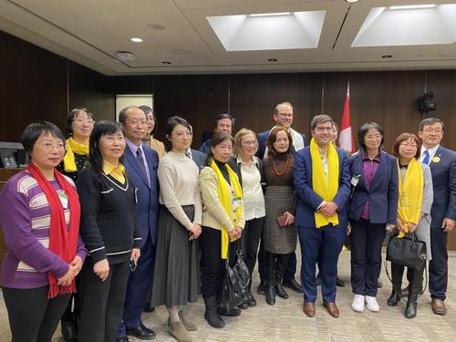 ![]() 12月14日,部分法輪功學員和國會議員吉尼斯和威爾森(Arnold Viersen)合影。(周荔敏/大紀元) |