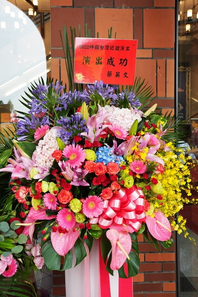 ![]() 神韻藝術團6月7日在嘉義縣表演藝術中心進行臺灣首場演出,總統蔡英文致贈花籃祝賀神韻晚會演出成功。 |