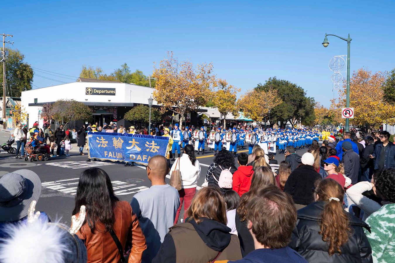 美國北加州第六十九屆洛斯加托斯市“兒童聖誕遊行”(Los Gatos Children's Christmas / Holidays Parade)十二月六日舉行,法輪功學員再次受邀參加遊行,並受到觀眾和市議員的歡迎。市議員瑪麗亞·裏斯托(Maria Ristow)和先生參加了遊行。裏斯托很高興了解到法輪功學員的隊伍參加遊行,她說,“感謝你們參加洛斯加托斯聖誕遊行。我們歡迎所有灣區的團體參加遊行,尤其是表演舞蹈和演奏樂曲的隊伍更受歡迎。我們非常感謝你們的隊伍參加遊行。”裏斯托議員說,“我認為真、善、忍原則非常完美,這個原則對每個人來說都非常重要。” 居民艾琳(Eileen)和女兒都很喜歡法輪功學員的隊伍,艾琳說,“法輪功學員的隊伍很棒,我們很喜歡看他們的表演,他們非常壯觀。我喜歡真、善、忍,這個原則很偉大。”