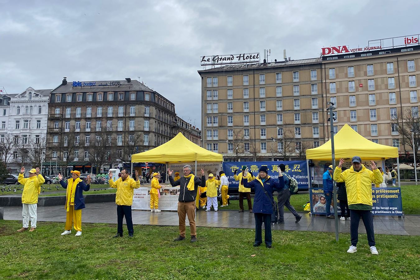 打印機版 | 【投稿/反饋】 聖誕節將至,從十二月五日到十二月七日,在法國東部的斯特拉斯堡(Strasbourg)和西部的雷恩(Rennes)繁華的鬧市與典雅的街區,法輪功學員舉辦了系列講真相的活動。他們向來往的行人演示法輪功功法,表演腰鼓,展示祥和、向上的精神。同時告訴人們法輪功被中共迫害的真相,呼籲人們共同制止迫害。很多民眾簽名聲援法輪功反迫害。德拉克(Drako)是醫生,路過活動地點時說:“我是一名醫生。我不同意活摘器官這種做法。所有人都要知道(活摘器官)這件事。”勞倫斯(Laurence)是生物研究員,在斯特拉斯堡接受培訓後準備乘火車回家。她非常震驚:“我簡直不敢相信。今天在車站看到你們才得知此事(活摘器官)。我完全不知道存在這種野蠻行徑。希望此事能引起關註,讓這種做法徹底停止。”斯特拉斯堡歐洲理事會(Conseil de l’Europe)十二月二日到四日召開人權議題會議。歐洲理事會的核心支柱是《歐洲人權公約》及其執行機構歐洲人權法院。任何個人,無論是否為公約締約國國民,若認為某締約國侵犯了其權利,均可向該法院提出申訴。十二月四日,來自法國、德國和瑞士的部份法輪功學員,在歐洲理事會大廈前和斯特拉斯堡火車站廣場上,進行了講真相的活動。他們向各界人士發放法輪功真相傳單,揭露中共對法輪功學員的迫害。同時征集簽名,呼籲制止中共活摘器官罪行。人們了解真相後,紛紛表示支持法輪功學員的行動。有的說:“每個人都有信仰的權利!”有人對法輪功學員說:“中共很險惡,多保重啊!加油!” 莫裏斯(Maurice)是法國鐵路公司的員工,他在G7+7反活摘請願書上簽字後表示:“我們都應該保持人性,相互扶持,而非互相殘殺。迫害本就不該存在。這就是我的真心話。無論如何,象其它宗教一樣,我們都來自某個地方,最終又會離開。不要種族歧視,不要偏執,就象你我相遇,這就是幸福。全世界都支持你們!”