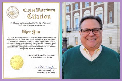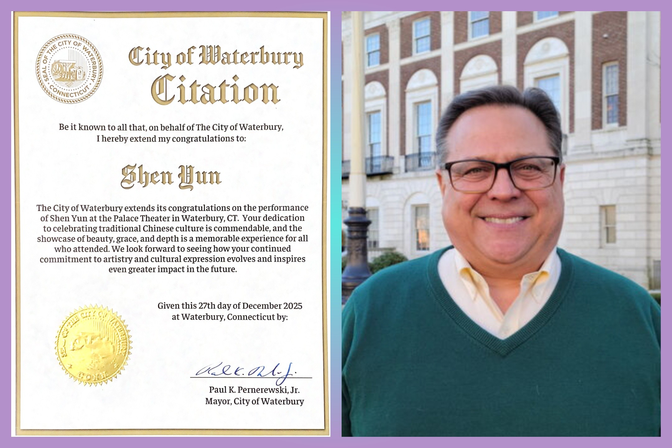 沃特伯裏市市長保羅·K·佩爾內雷夫斯基在嘉獎令中表示,沃特伯裏市向神韻藝術團在派雷斯劇院的演出致以誠摯祝賀,並高度評價神韻藝術家在弘揚中國傳統文化方面所付出的不懈努力。