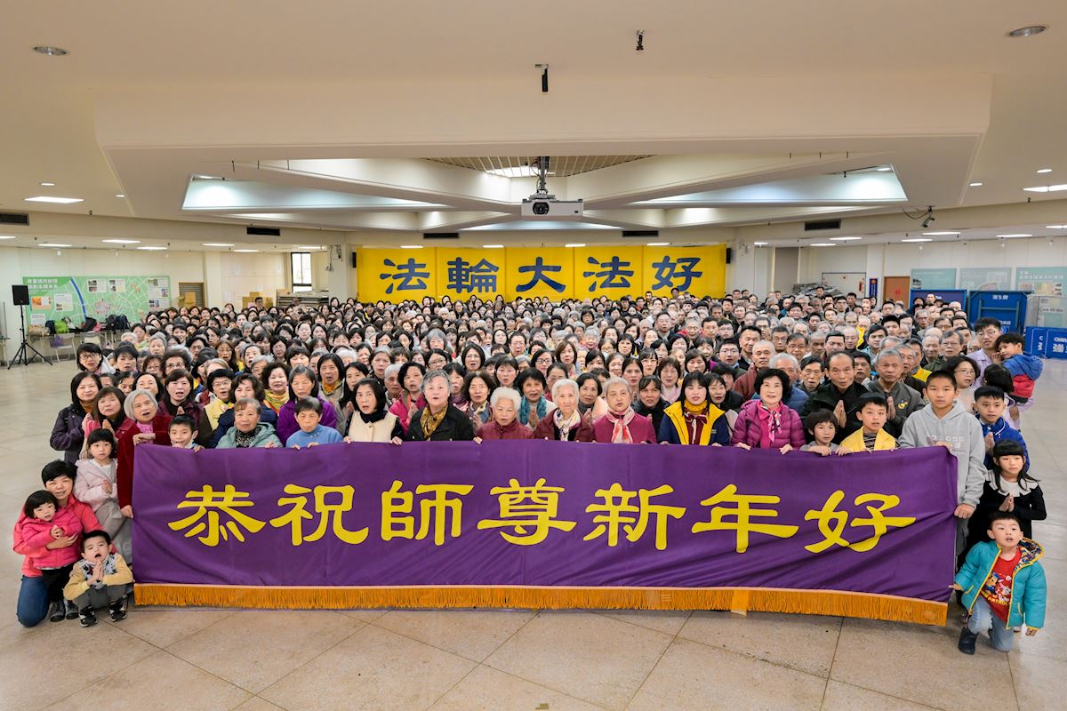 臺北部分法輪功學員十二月十四日上午在新北市板橋區公所禮堂先集體學法交流,分享推廣神韻與提高心性的修煉心得;中午,學員們拿出大橫幅向師父拜年,齊聲恭祝李洪志師父新年好:“恭祝師尊新年好!法輪大法好,真善忍好!”機械五金公司老板中鵬曾經煙酒不離身,上了法輪大法九天學習班,聽到師父講戒煙的法理,結果當天他就親身體會到大法的神奇:“真的喔,我就再也不會想要抽煙了,不會去想。師父還告訴我們酒要戒掉,那酒也自然而然就戒掉了。”周圍的客戶與朋友看到他前後判若兩人,都感到很驚奇。
