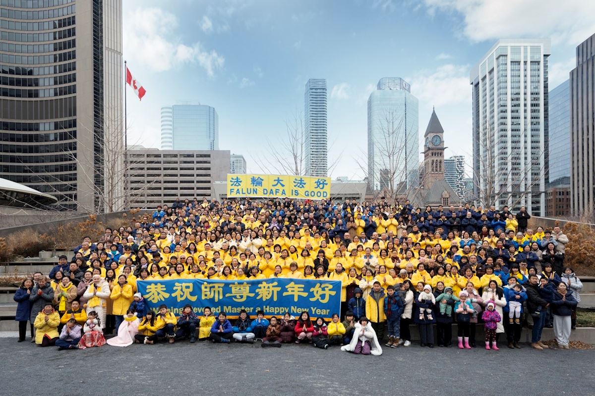 加拿大多倫多大法弟子十二月二十日齊聚多倫多市政廳,給師父拜年,恭祝師父新年好!多倫多大法弟子感恩師父將法理傳於世間,使他們學會人與人之間的互敬、互愛、互助,讓他們積澱了寶貴的精神智慧,令他們的生命熠熠生輝。
