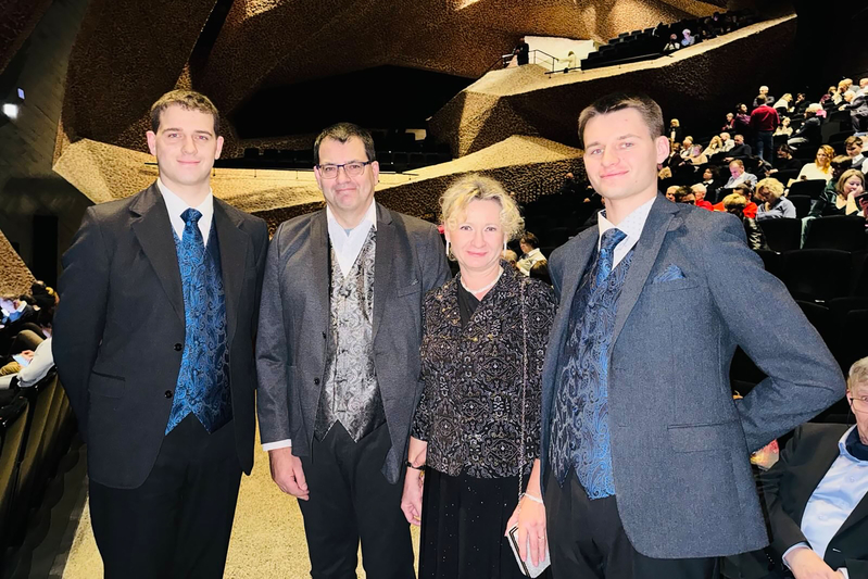 ![]() 12月28日晚,波蘭醫學專家帕維爾·伯恩特(Paweł Berndt)和太太、腫瘤科專家瑪格達萊娜(Magdalena)以及2位醫科大學生兒子彼得(Peter, 左一)、克日什托夫(Krzysztof, 右一)一起觀賞了神韻演出。(大紀元) |