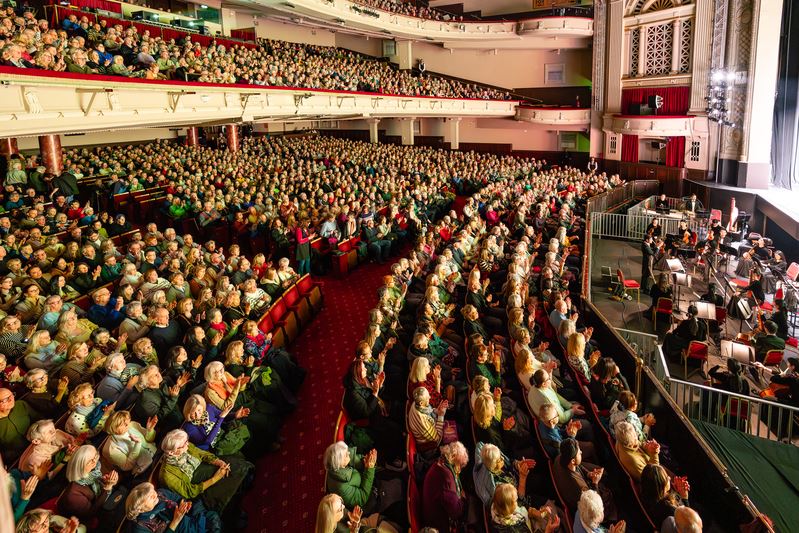 ![]() 2月14日晚,美國神韻環球藝術團在英國蘭迪德諾西姆魯劇院(Venue Cymru)的演出爆滿。 (大紀元) |