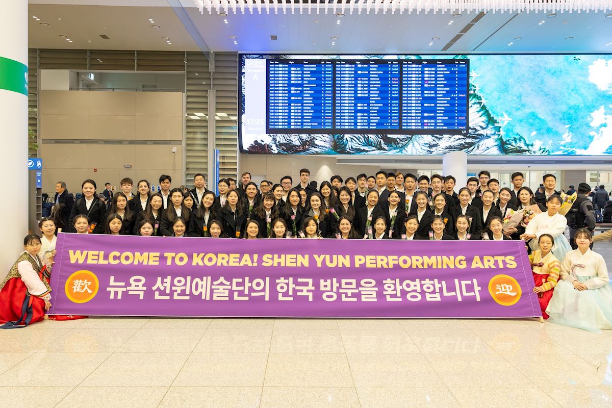 ![]() 2月9日下午,美國神韻藝術團結束在臺灣為期1個多月的巡回演出後,飛抵韓國仁川國際機場。 (大紀元) |