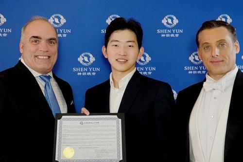 德州卡羅爾頓市(Carrollton)市長史蒂夫·巴比克(Steve Babick)2月10日晚親臨劇院向神韻頒發褒獎,宣布2026年2月10日至11日為卡羅爾頓市“神韻日”。