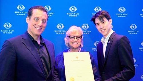 她說:“這是我第7次觀賞神韻。我一直在休士頓觀看神韻演出,每當神韻到來,能夠欣賞演出都是此地一年中的一大亮點。因此,我謹代表湯博爾市,向神韻頒發褒獎。”