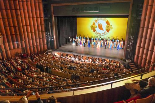 ![]() 2月21日晚,神韻新世界藝術團的在德州麥克艾倫表演藝術中心(McAllen Performing Arts Center)的演出滿場。圖為演出謝幕圖。(大紀元) |