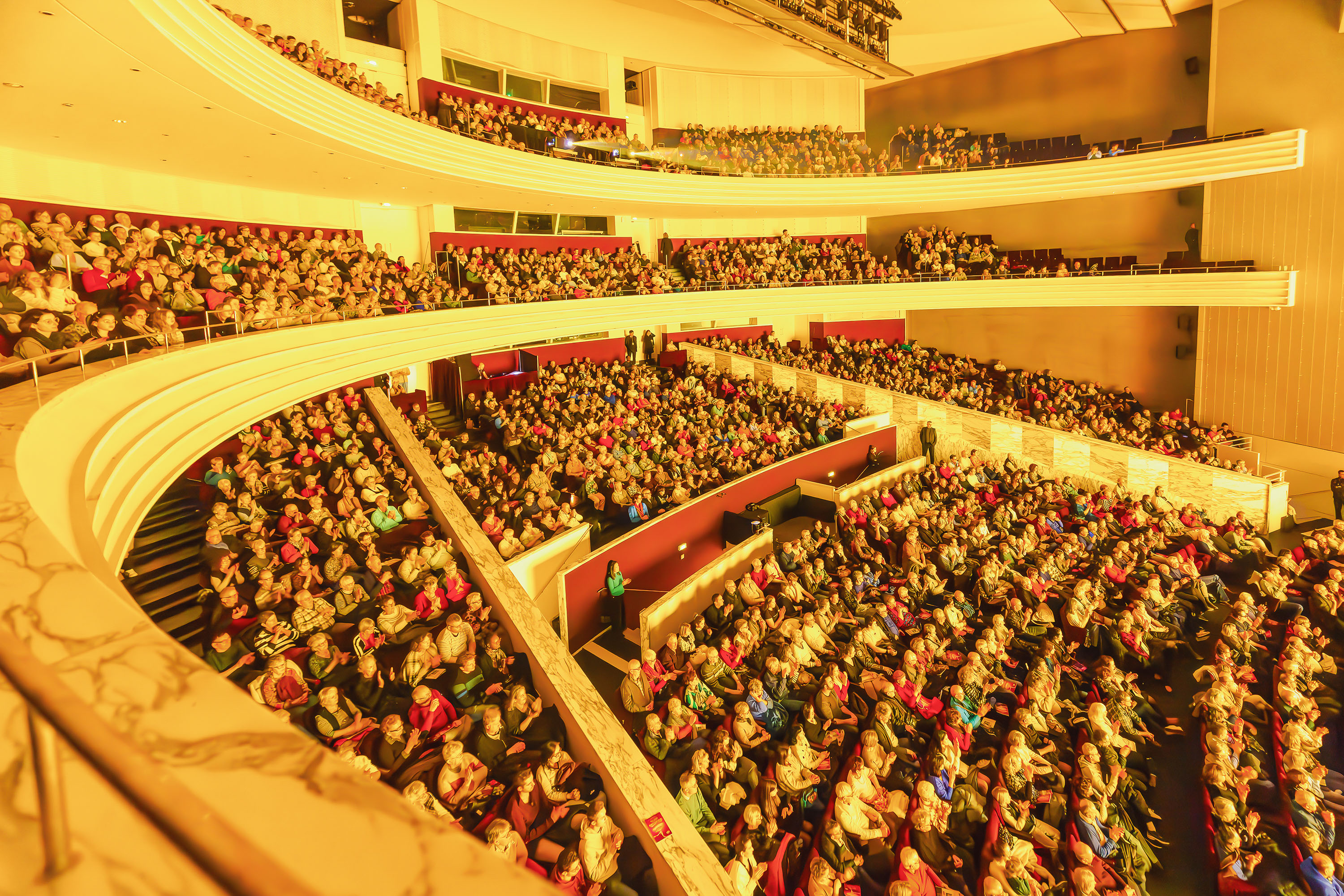 ![]() 2月21日,神韻巡回藝術團在美國印第安納州印第安納波利斯市巴特拉藝術中心克勞斯紀念堂(Clowes Memorial Hall, Butler Arts Center)進行的2場演出,下午場爆滿。(大紀元) |