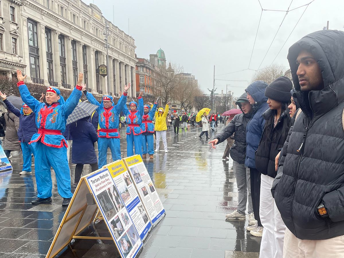 “我很喜歡真、善、忍,因為這是我們每個人都應遵循的核心價值。”二月二十一日,荷蘭遊客艾瑞娜(Irene)在愛爾蘭遇見法輪功學員後說,同行的羅恩也贊美大法真、善、忍的準則“非常棒”。當日,盡管風雨不斷,法輪功學員依然來到都柏林市中心講真相。在丙午馬年伊始,將大法的美好帶給當地民眾以及來自世界各地的遊客,並傳遞新年祝福。許多民眾在請願書上簽名、支持制止中共迫害法輪功後說,是集體煉功的場面,令他們停下腳步。其中就有前文提到的艾瑞娜(Irene)。她看到後,還向同行的羅恩(Rowan)介紹中共對法輪功的迫害。艾瑞娜對學員說,她曾在荷蘭的兩個城市,遇見過法輪功學員,她也逐漸了解到這場正發生在中國的迫害。“我真的沒想到,居然會有這樣的迫害發生,而且到了如此(殘酷)的程度。”艾瑞娜說。中共活摘法輪功學員器官的暴行更是令艾瑞娜感到驚訝且難以接受,她直呼“太荒謬了”。兩人都簽名支持法輪功學員反迫害。