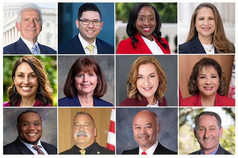 (第二排左起)普萊瑟(Placer)縣第二選區議員珊蒂·蘭登(Shanti Landon);康特拉科斯塔縣(Contra Costa)第2選區議員坎迪斯·安德森(Candace Andersen);聖塔克拉拉市(Santa Clara)市長麗莎·M·吉爾莫(Lisa M.Gillmor);苗必達(Milpitas)市長卡門·蒙塔諾(Carmen Montano)。