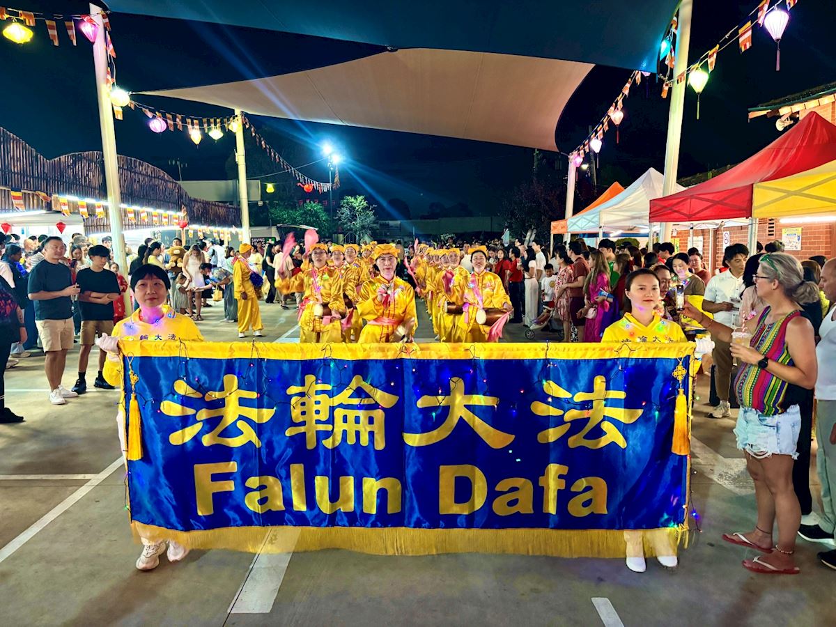 二零二六丙午馬年,澳洲墨爾本從一月下旬開始,直至黃歷新年的元宵節,從西區、東區到市中心,華人和越裔社區舉辦了多場新春慶典。活動期間,法輪功團體應邀演出,他們身穿獨具特色的演出服,以亮麗的色彩、精彩的表演為當地節慶送去祝福、增添喜慶,也贏得了觀眾們的掌聲和贊譽。其中,在二月十六日除夕之夜,墨爾本西部的布雷布魯克(Braybrook)區舉行了熱鬧的廟會,各族裔民眾齊聚一堂,辭舊迎新。法輪功腰鼓隊受邀開場表演,隨後多次繞場遊行。金黃色的演出服非常吸睛,學員們隨著整齊有力的鼓點變換隊形,吸引觀眾駐足觀賞、拍照。他們的精彩表演成為當晚慶典的一大亮點。美發沙龍老板喬治婭(Georgia),觀看了學員們在舞臺上的表演和遊行後,表示很受感動。“我非常喜歡參加慶祝中國新年的活動。這是我一年中最開心的時刻,總令人感到非常興奮。”她說,“(法輪功團體表演的)腰鼓、他們的笑臉,所有的一切,充滿愛,令人振奮,真的非常吸引人。”
