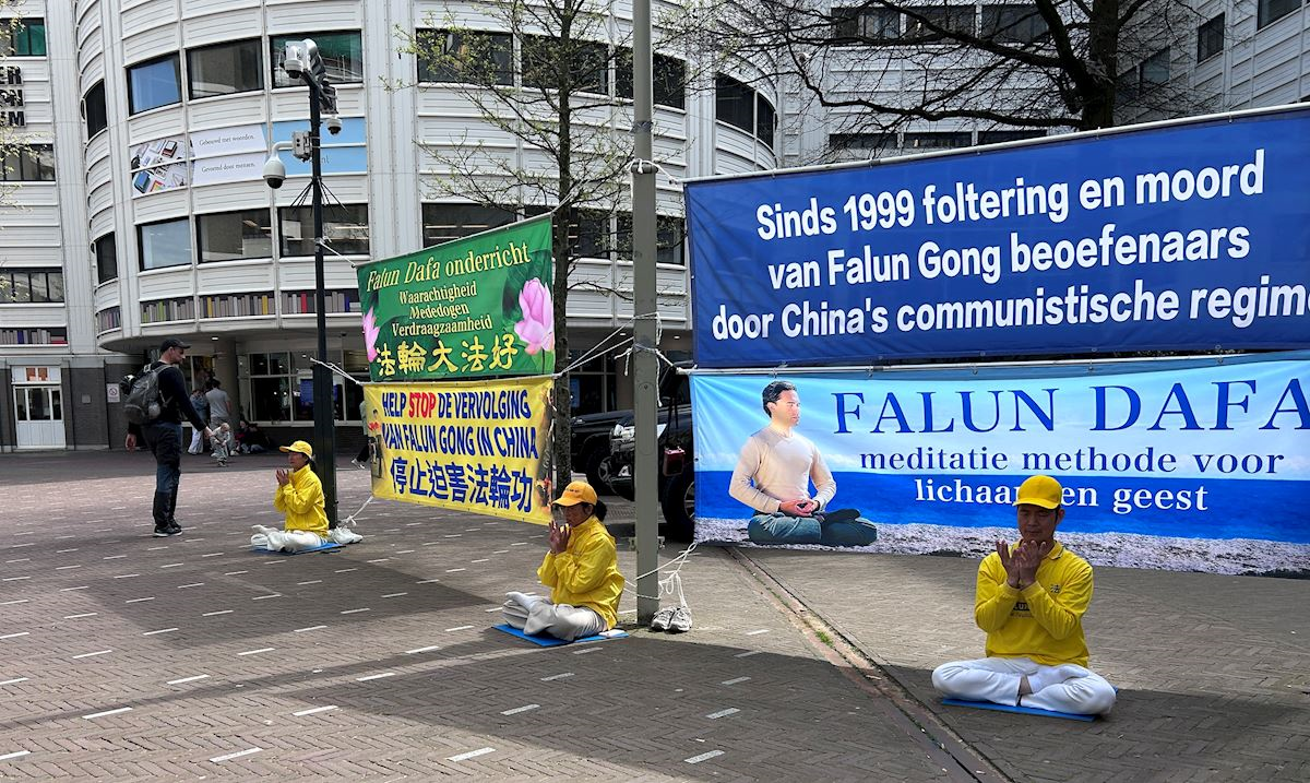 荷蘭法輪功學員四月七日至四月九日在海牙(Den Haag)眾議院前舉辦活動,向新宣誓就職的荷蘭政府官員及眾議院議員講述法輪功真相,揭露中共對法輪功學員的殘酷迫害,包括延續至今的活摘法輪功學員器官的罪惡,呼籲荷蘭政府采取措施支持法輪功學員反迫害。學員們在眾議院臨時辦公地點艾琳公主路南側(Prinses Irenepad)及對面的貝祖登豪茨路(Bezuidenhoutseweg)北側展示橫幅:“停止迫害法輪功”、“法輪功反迫害26周年”、“停止活摘器官虐殺法輪功學員!”“法輪大法弘傳世界一百多個國家和地區,上億人身心受益”、“世界需要真善忍。”