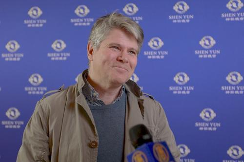 ![]() 3月25日,壁畫師、公司老板查爾斯‧斯內爾(Charles Snell)在英國斯旺西觀賞了神韻演出。(新唐人) |