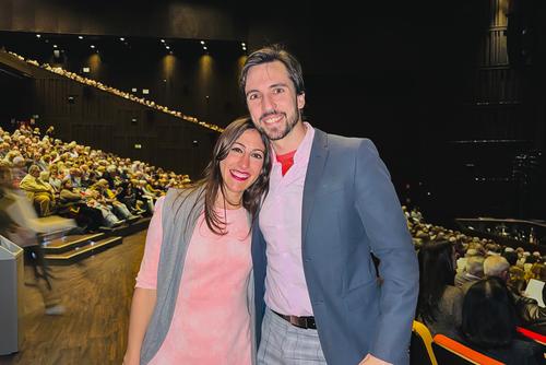 ![]() 3月24日晚,西班牙舞蹈演員艾琳‧猶達‧克魯茲(Irene Judas Cruz)(左)與獲獎電視制片人克洛丘‧莫雷諾‧馬丁內斯(Clochu Moreno Martínez)一起在西班牙塞維利亞觀賞了神韻演出。(大紀元) |