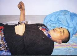 元月1日提审,问他姓名地址,他拒绝回答,随后遭毒打。恶警拿警棍击打他的头部及身上,踢他的小腿肚子。孙友发回到号里后被带上手铐脚镣。因为手铐脚镣连在一起,孙友发不能躺不能站,只能靠在墙上蜷坐着。