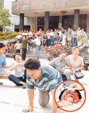 昨日下午更有近百名华侨村民在派出所门前拉起横幅,要求查办打人凶手。派出所一名所长在接待请愿人士时表示,会对此事件进行认真调查,严肃处理。