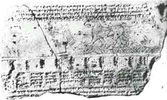 图片说明: 这块古巴比伦的泥版描绘了长蛇星座南端的一颗星和星相中代表利奥星座的狮子。