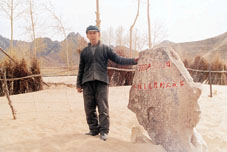 老伯叫宋长海,72岁,土生土长。他说,榔头村原本依山傍水,村前为河,幼时河水甚湍,不敢轻易下水,但十几年前始,牛羊多了,草木少了,河水浅了,以至五、六年前河水乾涸,成了滩涂,再成沙漠。