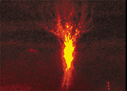 东方日报报道,成大物理系上月一日凌晨从阿里山气象站往大陆广东的方向发现四十个「红色精灵」,本月七日晚在台东外海的空中又发现六个「红色精灵」。