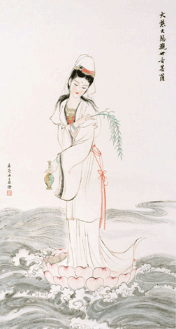 观世音菩萨,她和阿弥陀佛、大势至菩萨是西方极乐世界的三圣。她是中国、朝鲜、日本、越南等各族人民最喜爱的女神,尤为妇女所喜爱。她永远美丽、法力无边、救苦救难、大慈大悲。在人们的心目中,观世音菩萨就是纯洁、美好、慈悲、善良的化身,就是逢凶化吉、遇难呈祥的大救星。