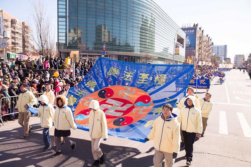 ![]() 2月4日,纽约法轮功学员参加了法拉盛一年一度的“纽约华人新年大游行”,队伍壮观、丰富多彩,富传统的中国人过年的年味,给当地民众带来“法轮大法”和“真善忍”的美好。 |