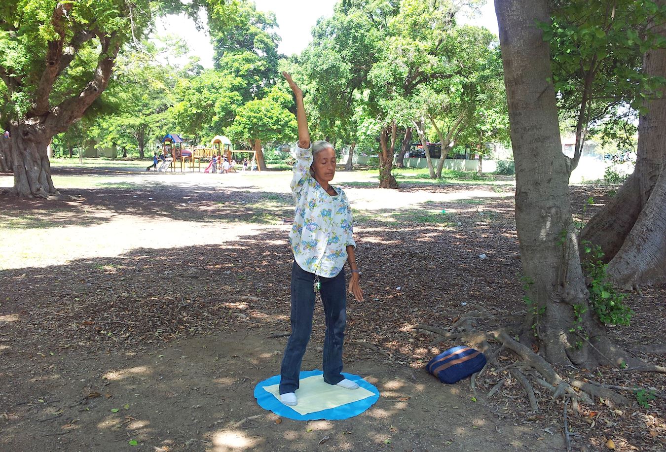 ![]() 委内瑞拉法轮功学员Juanita在炼功。 |