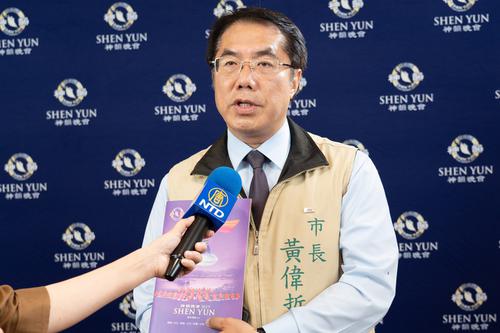 ![]() 4月30日晚,台南市市长黄伟哲在开演前特别前来向神韵艺术团致意,并鼓励台南乡亲应踊跃多看神韵。 |