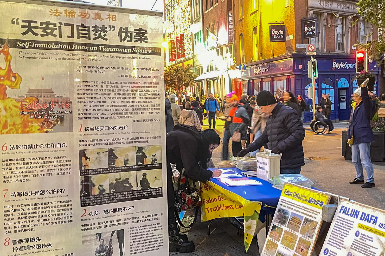 十二月二十七日,二零二五年的最后一个周六,爱尔兰法轮功学员在都柏林市中心举办讲真相活动。向当地民众及世界各国游客介绍法轮功与修炼真、善、忍的美好,揭露中共的迫害以及活摘法轮功学员器官的罪行。“看见今天这种真相,感觉特别激动”,“浑身在发抖”,“看到这些,我就感觉终于可以说真话了。”一位来自中国大陆的女士擦着眼泪说,这些年自己一直为不能说真话而痛苦,无论写点什么东西,都要先重复中共的谎话、套话。正因为无法忍受这样的环境,她才不得已选择出国。当天,她与学员聊了一个多小时,从文物遭中共运动毁坏的痛心、到看见老人摔倒就赶快躲开的无奈,看到种种社会怪象,感到很压抑又无奈,直言想做个善良人都不易。学员告诉她,中共对法轮功学员的迫害,让社会整体道德下滑,受害者不仅仅是修炼人,而是全体中国民众。中共不让按照真、善、忍做人,那不就是让人做坏人吗?她点头赞同,也觉得真、善、忍好,中共鼓动的就是人整人、人斗人。她高兴的当场退出中共组织。