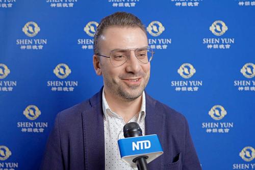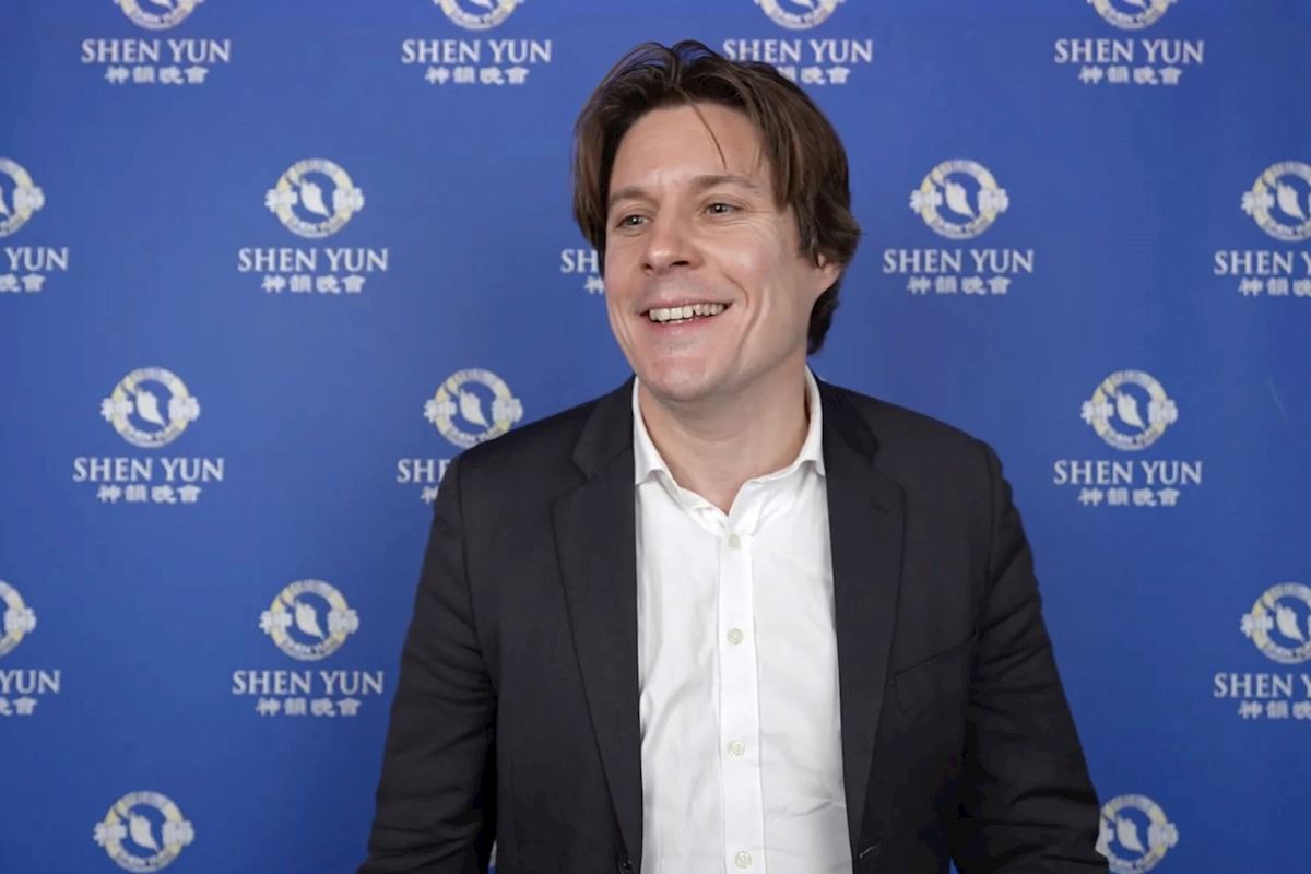 “我心中充满对神韵舞蹈家的敬佩,舞动中带给人深深的感动。演出也有神性一面,壮丽辉煌的一面。”他说,“展现了‘祥和’的传统价值,也就是内在的力量、内心的安宁,这带给人外在的坚定从容,令我印象深刻。演出散发的正向能量也让我深受感动,使我感到内心更加强大。”