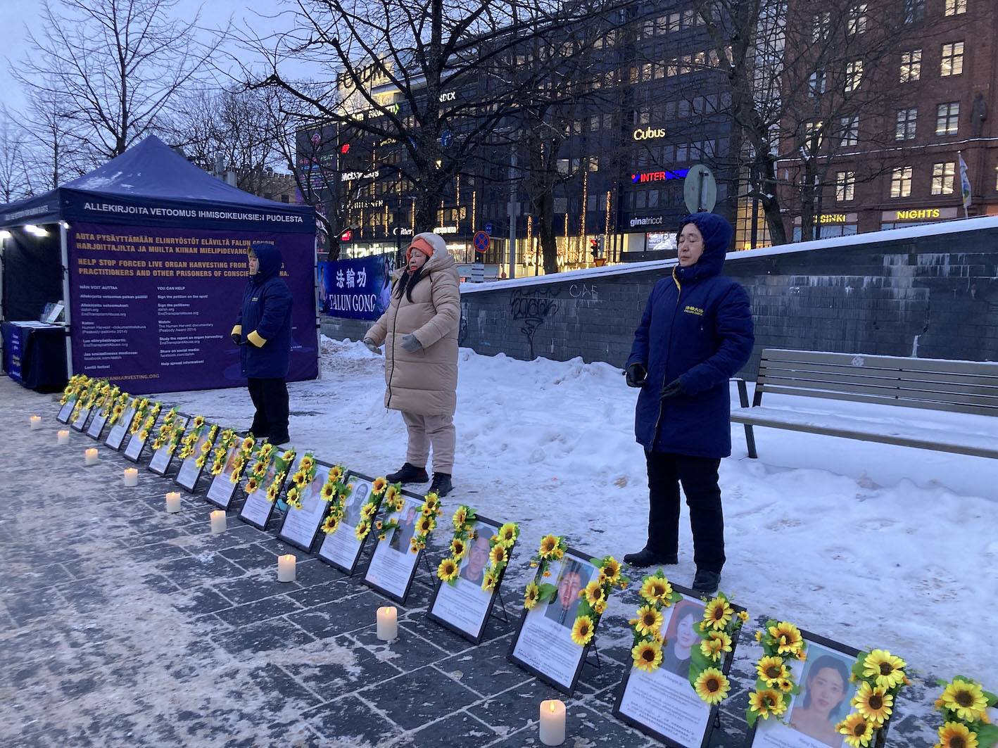 二零二六年一月二十七日是国际大屠杀纪念日(International Holocaust Remembrance Day),这一纪念日由联合国设立,旨在缅怀被纳粹屠杀的六百万犹太人,提醒世人警惕仇恨、歧视与种族灭绝的重演。当天,芬兰的法轮功学员在约摄氏零下 10 度的严寒中举行烛光守夜活动,向公众讲述中共对法轮功长达 27 年的迫害事实。活动现场的烛光在寒夜中静静摇曳,提醒人们铭记历史、关注当下的人权危机,并呼吁国际社会共同制止迫害。