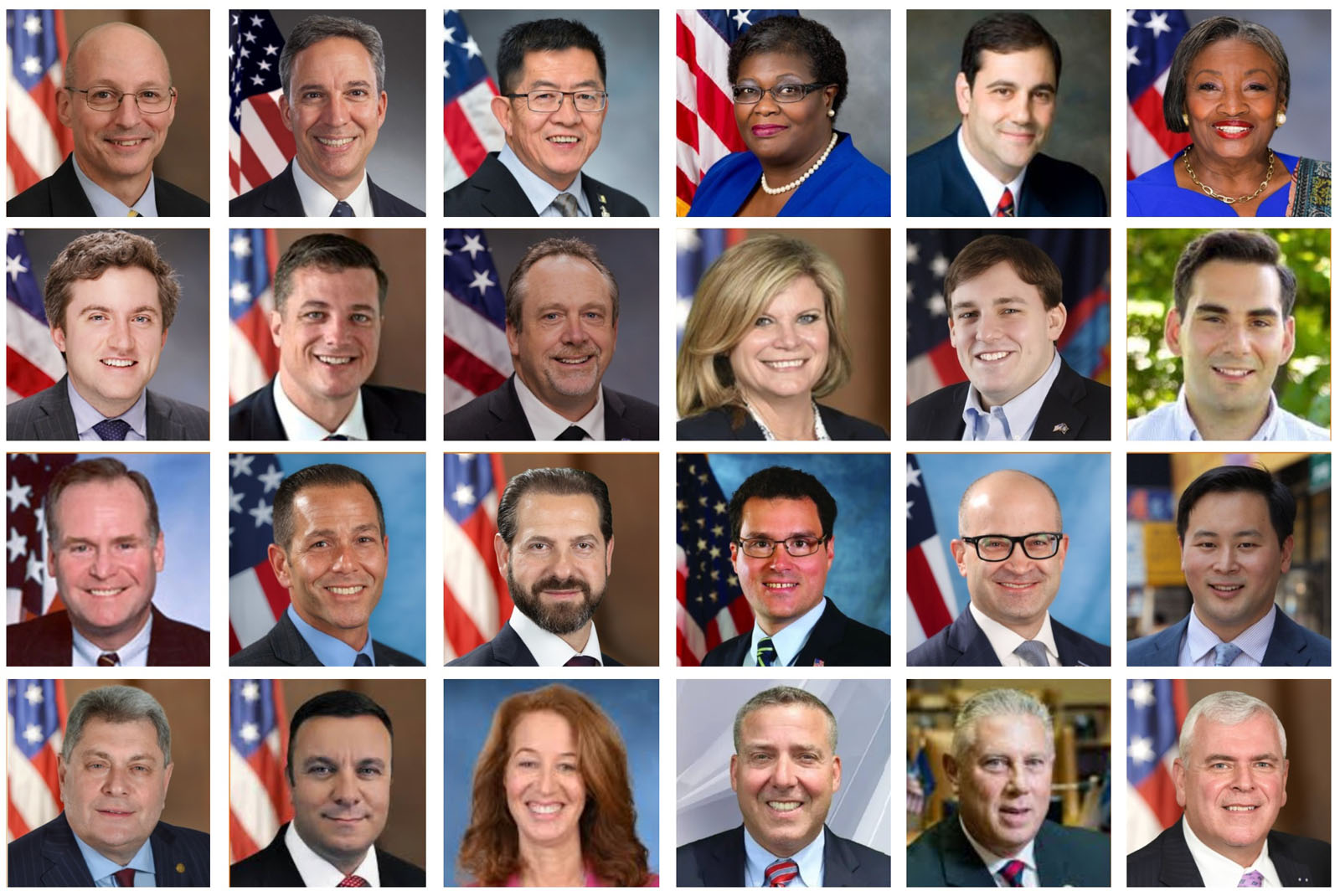 图片说明:(以选区顺序,由上至下、由左至右)第3选区州参议员迪恩·默里(Dean Murray);第7选区州参议员杰克·马丁斯(Jack Martins);第17选区州参议员陈学理(Steve Chan);第19选区州参议员罗克珊·珀绍德(Roxanne J. Persaud);第24选区州参议员安德鲁·兰扎(Andrew Lanza);第35选区州参议员安德里亚·斯图尔特-库辛斯(Andrea Stewart-Cousins);第42选区州参议员詹姆斯·G·斯科菲斯(James G. Skoufis);第43选区州参议员杰克·阿什比(Jake Ashby);第51选区州参议员彼得·奥伯拉克(Peter Oberacker);第2选区州众议员乔迪·吉格里奥(Jodi Giglio);第5选区州众议员道格·史密斯(Doug Smith);第7选区州众议员贾瑞特·甘多尔福(Jarett Gandolfo);第8选区州众议员迈克尔·菲茨帕特里克(Michael J. Fitzpatrick);第9选区州众议员迈克尔·杜尔索(Michael Durso);第16选区州众议员丹尼尔·诺伯(Daniel Norber);第17选区州众议员约翰·米库林(John K. Mikulin);第19选区州众议员爱德华·RA(Edward P. RA);第40选区州众议员罗恩·金(Ron Kim);第46选区州众议员亚历克·布鲁克-克拉斯尼(Alec Brook-Krasny);第98选区州众议员卡尔·布拉贝内克(Karl A. Brabenec);第100选区州众议员宝拉·凯(Paula Kay);第107选区州众议员斯科特·本德特(Scott Bendett);第108选区州众议员约翰·麦克唐纳三世(John T. McDonald III, RPh);第121选区州众议员约瑟夫·安杰利诺(Joseph G. Angelino)。(大纪元合成图片)