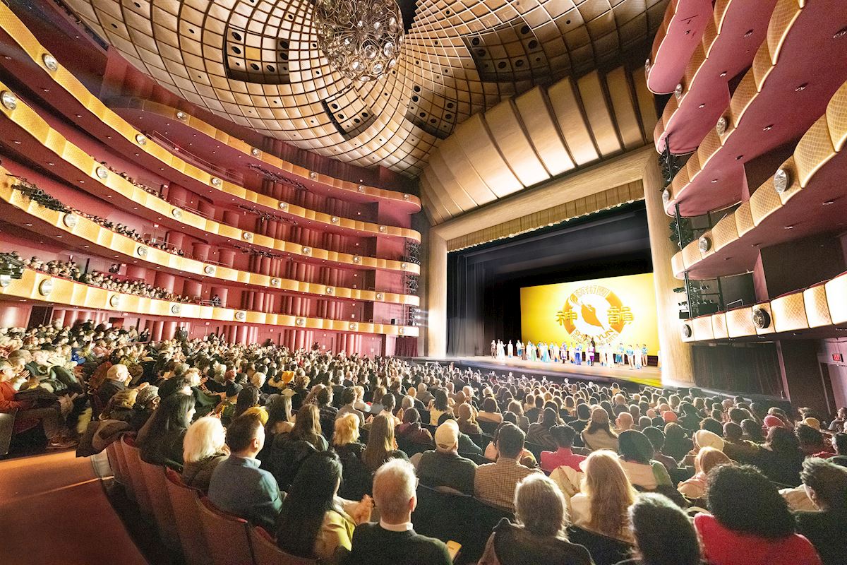 ![]() 3月25日至4月12日,神韵纽约艺术团在纽约林肯中心大卫寇克剧院(The David H. Koch Theater)共演出18场,图为4月8日下午第12场演出爆满。 |