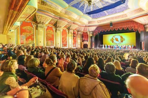 ![]() 4月2日至4日,神韵新世界艺术团在美国芝加哥西郊的奥罗拉派拉蒙剧院(Paramount Theatre)共演出5场,图为4月4日下午的第3场演出,票房再次爆满。 |