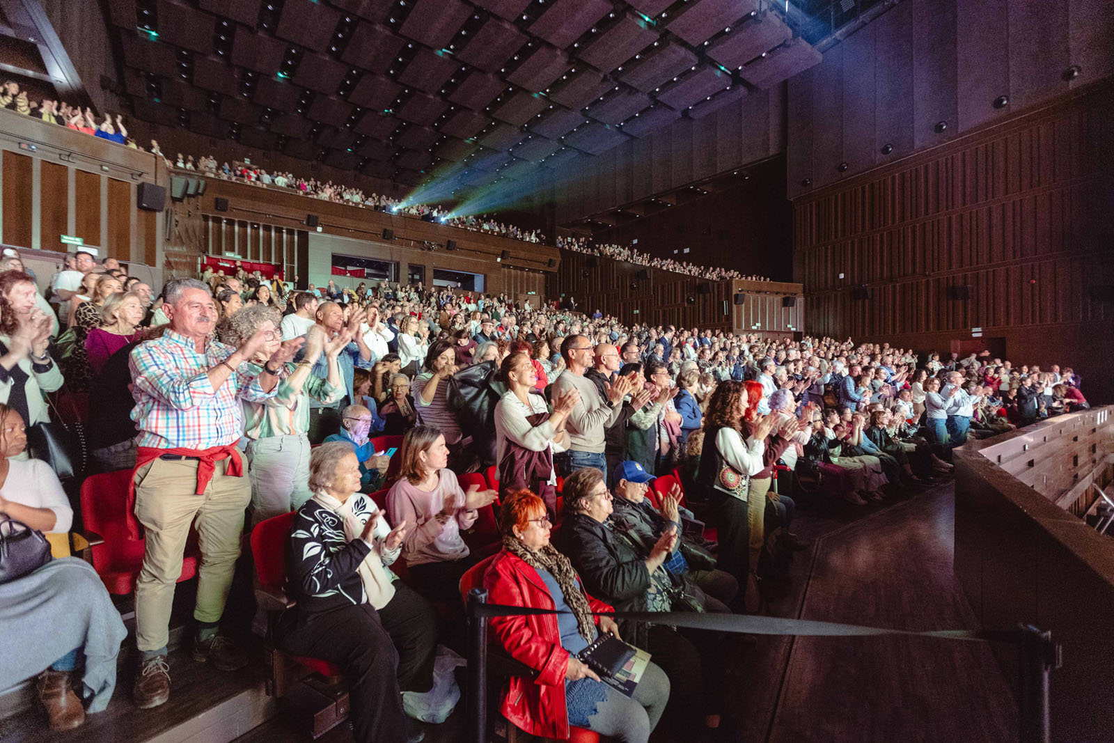 在剧院演出现场,观众展现出典型的“西班牙式热情”,时不时发出惊叹声与笑声。演出结束时,人们起立大力鼓掌、高呼“Bravo(好极了)”,神韵艺术家连续多次谢幕。