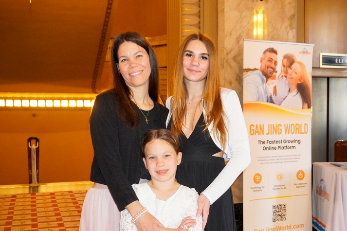 ![]() 3月21日下午,美国舞蹈教师琳达‧道斯(Linda Dawes)(左)和两个女儿在密苏里州圣路易斯观赏了神韵演出。(大纪元) |