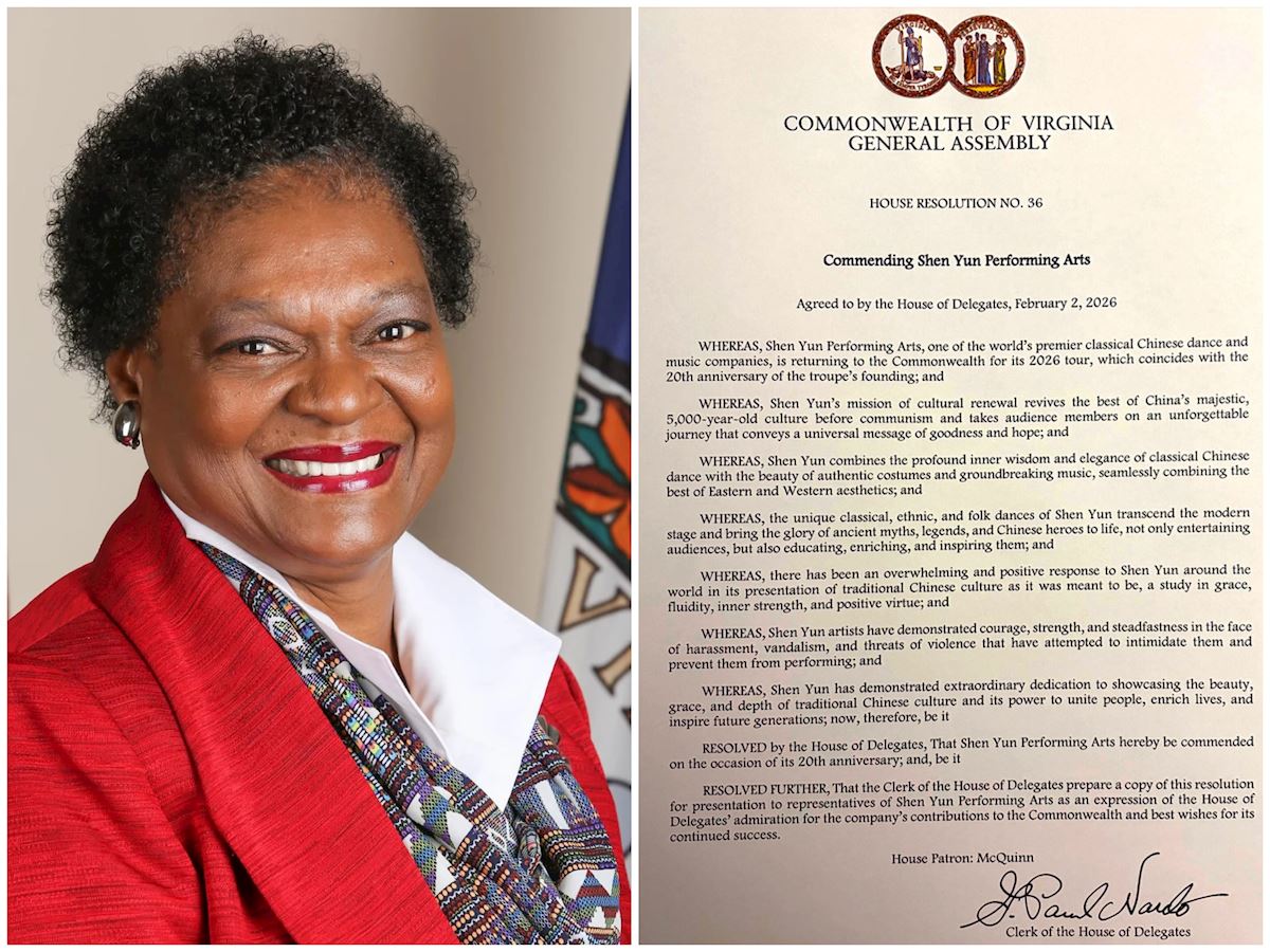 2026年2月2日,弗吉尼亚州众议院全票通过36号决议案,对神韵艺术团成立20周年给予表彰。